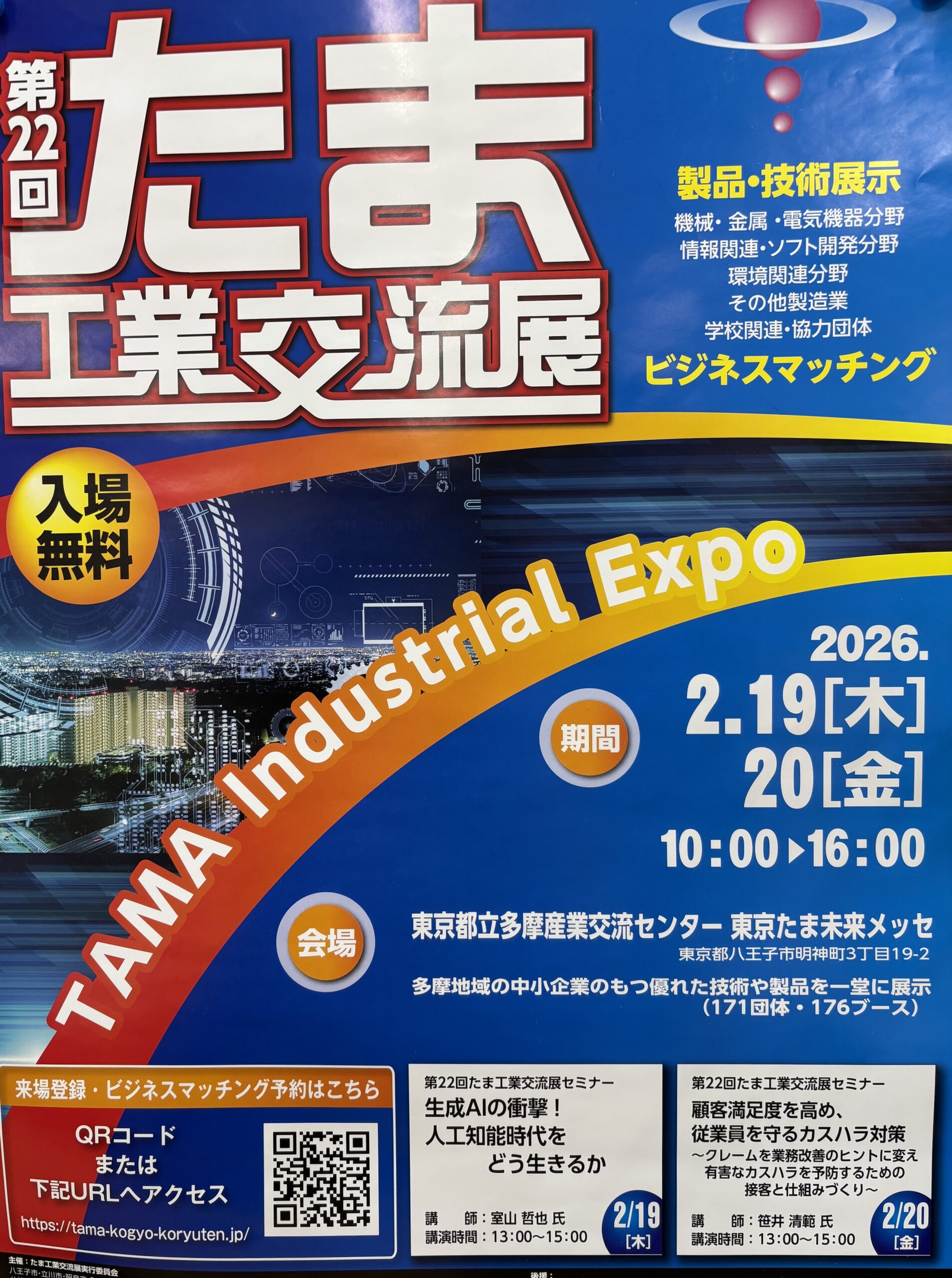 2/19(木).20(金)に行われる 第22回たま工業交流展に出展いたします。